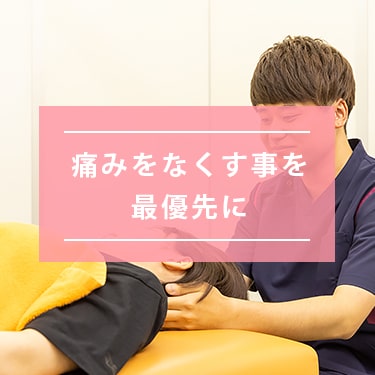 患者様の痛みに対して、手技、矯正、機器などから最善の施術方法を選択し痛みを和らげていきます。