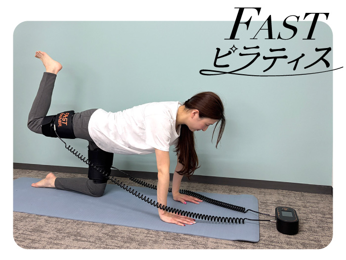 ピラティスの理論にFASTトレーニングを取り入れ、専用ベルトを使って筋肉にやさしく圧をかけることで、強い負荷をかけずに全身を刺激します。